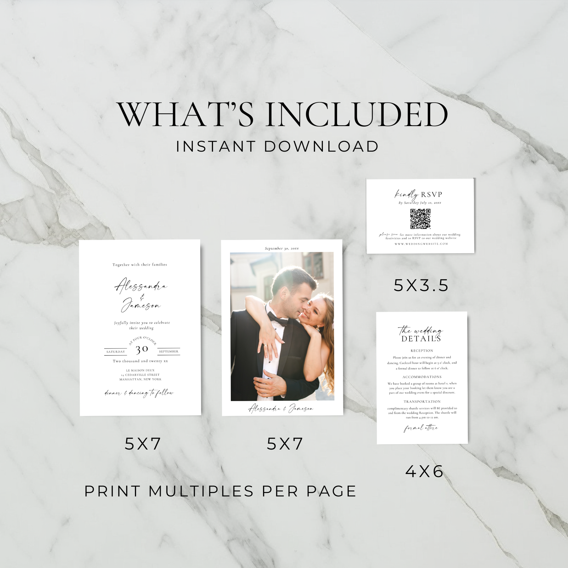 Elegant Wedding Invitation Suite Template with Photo - Alessandra
